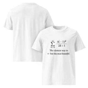 Dieses T-Shirt zeigt die berühmte Leibniz-Reihe zur Berechnung von π – mathematisch simpel, aber extrem langsam konvergent. Und genau darin liegt ihre Schönheit. Das Design kombiniert Nerdhumor mit ästhetischer Klarheit – ein Must-have für Mathematikfans, Professor:innen, Studierende und alle, die π nicht nur ausrechnen, sondern fühlen wollen.
